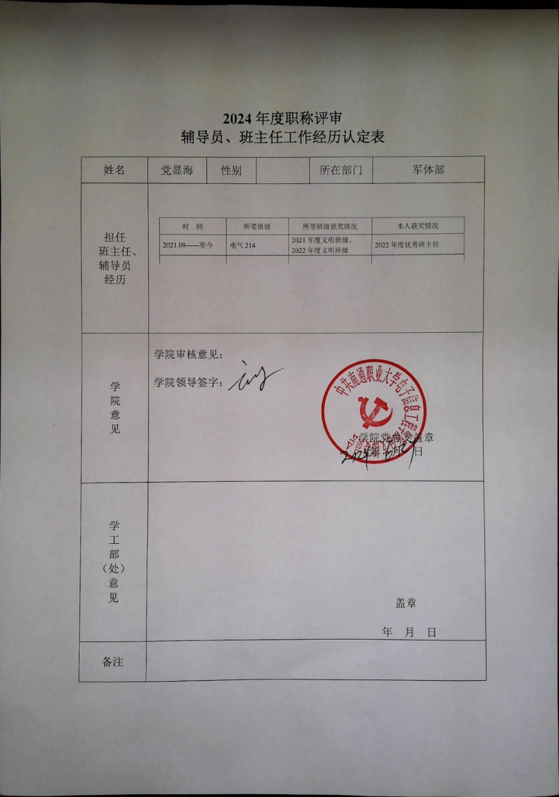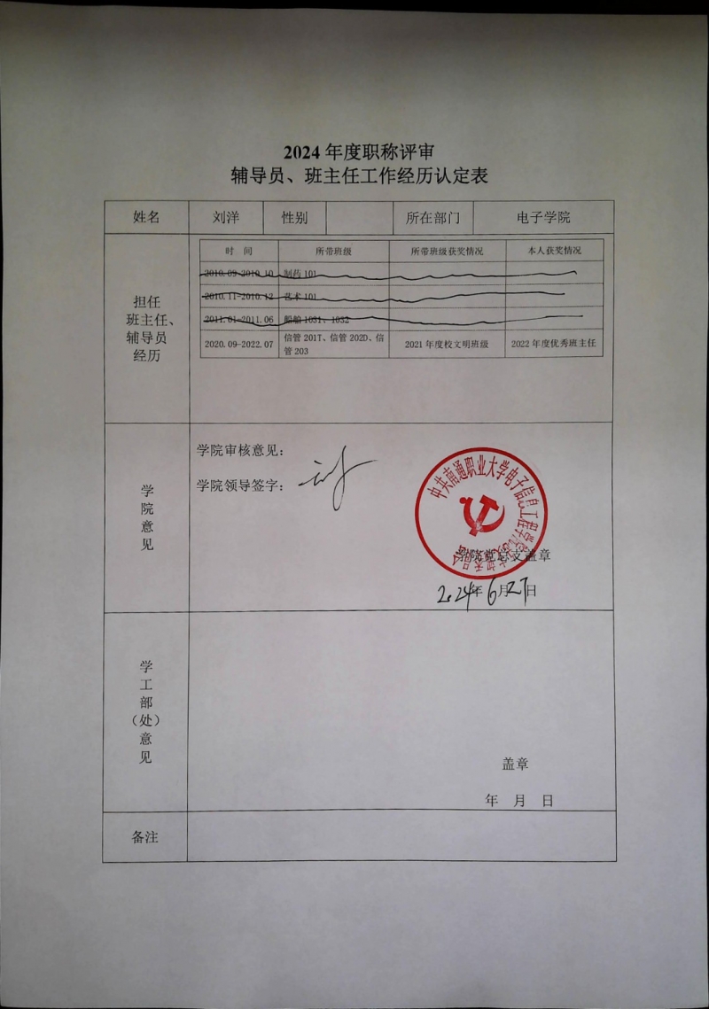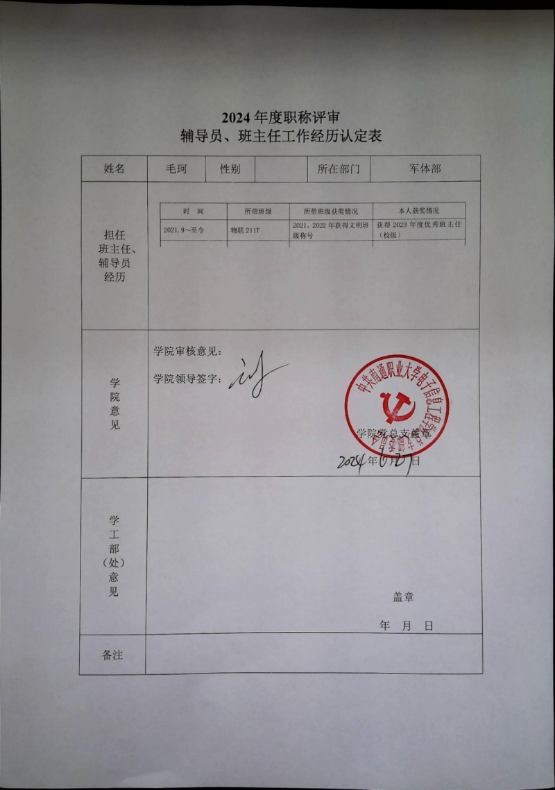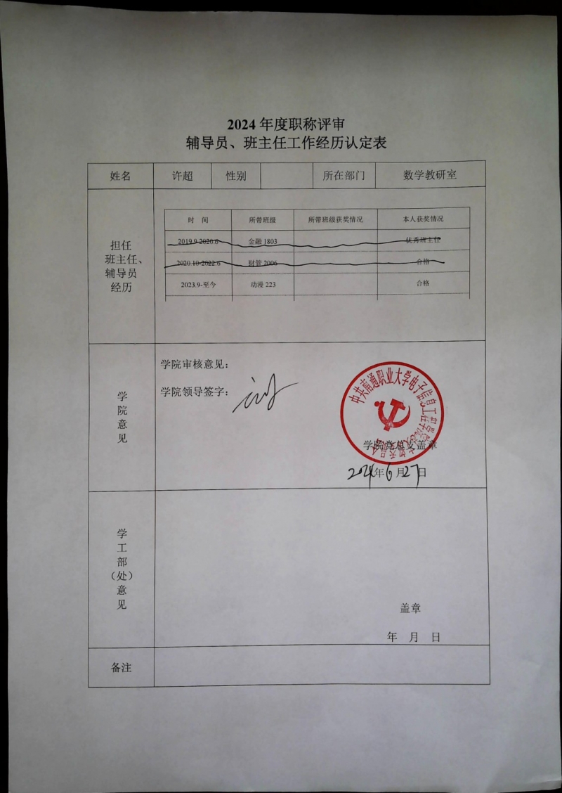根据kaiyun中国官方网站职称评审材料相关要求,现对相关老师在kaiyun担任班主任、兼职辅导员等工作情况进行认定,并予以公示,公示期从2024年6月27日——2024年7月3日,相关认定情况如下,公示期间有异议的可以书面形式向提出异议,提出异议需要以实名提出,不能用匿名,并写出具体的,真实的情况。