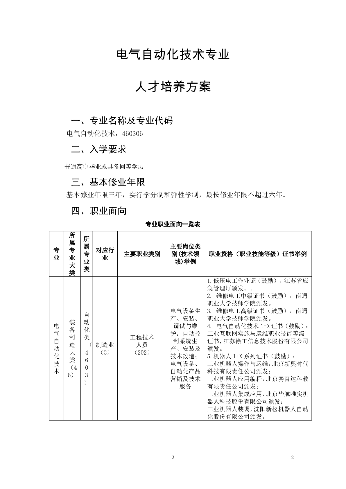 2023级电气自动化技术专业人才培养方案